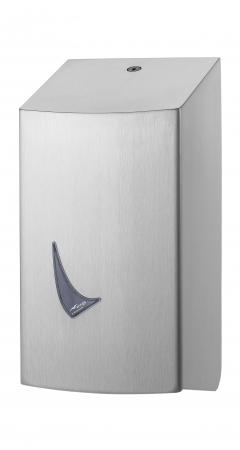 De houder is voorzien van een scherpe inox uitsparing aan de onderzijde, waarmee de centre pull rol eenvoudig en hygiënisch kan worden afgescheurd. Dankzij het cilinderslot met wings sleutel blijft de inhoud veilig afgesloten. De schuin aflopende bovenzijde voorkomt ophoping van stof en vuil, terwijl het kijkvenster links onderaan het vulniveau eenvoudig zichtbaar maakt.